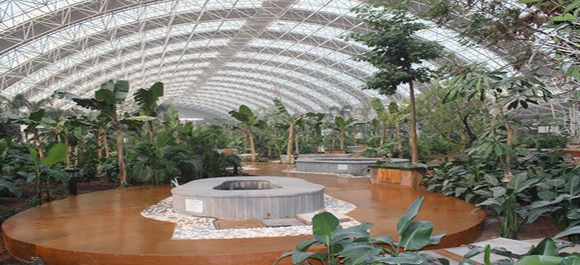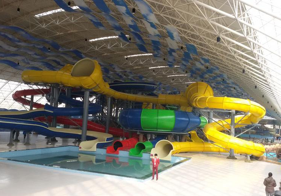 歡樂水王國坐落于度假區(qū)的西側(cè),室內(nèi)占地面積250000平方米,由設(shè)計(jì)奧運(yùn)水立方場館的加拿大著名的FORREC公司提綱設(shè)計(jì),是目前中國最大的室內(nèi)水上游樂項(xiàng)目,可同時容納30000人嬉戲.